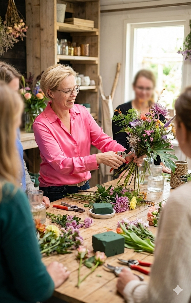Willkommen in unserer kreativen Welt! Jeden Monat verwandeln wir die stilvollen Räume der „Leuchte“ in eine florale Werkstatt.
